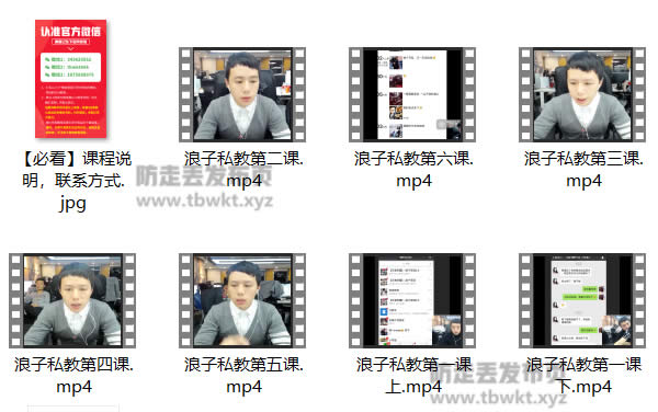 浪迹浪子私教《简单把妹》视频课程 发表评论 1,146 次浏览A+所属分类:浪迹团队 浪迹浪子私教《简单把妹》简介: 本期课程是浪子导师的私教课程,一共6节,全部均为视频课程。 浪迹浪子私教《简单把妹》目录: 浪子私教第一课上.mp4 浪子私教第一课下.mp4 浪子私教第二课.mp4 浪子私教第三课.mp4 浪子私教第四课.mp4 浪子私教第五课.mp4 浪子私教第六课.mp4 浪迹浪子私教《简单把妹》图文介绍: 浪迹浪子私教《简单把妹》 浪迹浪子私教《简单把妹》 浪迹浪子私教《简单把妹》课程地址: 资源下载此资源下载价格为19.9学币,VIP免费,请先登录登录后,请先点击上方【检测网盘资源】,【检测成功】说明课程没被和谐,会自动出现购买链接,请及时购买。 如果【检测失败】或【VIP用户下载失败】,说明课程链接失效,请联系客服补发后再购买。 本站所有课程均为【压缩包】加密上传,能有效防止失效,如你不会下载,点我查看下载教程>>