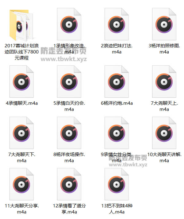 本期课程是浪迹团队的2016年线下录音课程,包含各种实战的聊天、约会、夜场的操作技巧和方法。