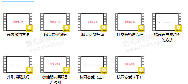 乐鱼《恋爱启示录》视频课程 乐鱼《恋爱启示录》视频课程已关闭评论 761 次浏览A+所属分类:乐鱼团队 乐鱼《恋爱启示录》简介: 本期课程是乐鱼乐魅情感的恋爱启示录课程,本课程一共9节视频课程。 乐鱼《恋爱启示录》目录: 高效邀约方法.mp4 聊天惯例锦囊.mp4 聊天话题指南.mp4 社交圈拓展流程.mp4 提高表白成功率的方法.mp4 外形搭配技巧.mp4 微信朋友圈吸引力法则.mp4 校园恋爱(上).mp4 校园恋爱(下).mp4 乐鱼《恋爱启示录》图文介绍: 乐鱼《恋爱启示录》 乐鱼《恋爱启示录》课程图片: 乐鱼《恋爱启示录》 乐鱼《恋爱启示录》课程地址: 资源下载此资源下载价格为19.9学币,VIP免费,请先登录登录后,请先点击上方【检测网盘资源】,【检测成功】说明课程没被和谐,会自动出现购买链接,请及时购买。 如果【检测失败】或【VIP用户下载失败】,说明课程链接失效,请联系客服补发后再购买。 本站所有课程均为【压缩包】加密上传,能有效防止失效,如你不会下载,点我查看下载教程>>