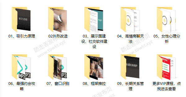 课程内容覆盖了男女恋爱的核心思维,男女吸引的原理、展示面改造、微信聊天、约会技巧等等内容。