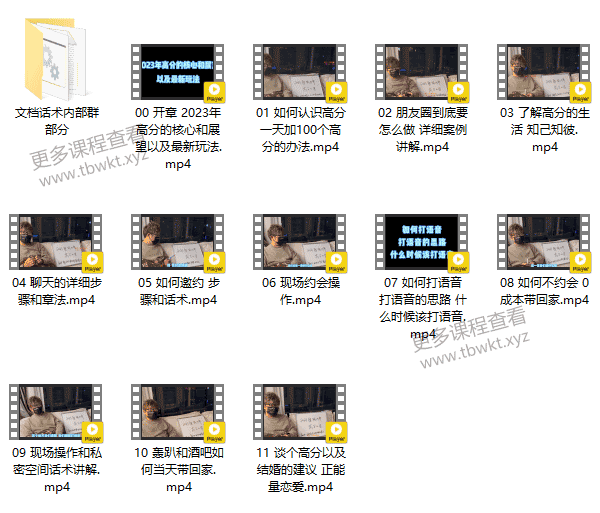 本课程将带领你深入了解2023年高分的核心和展望,以及最新的玩法。我们将分享如何认识高分,包括一天加100个高分的有效方法,以及详细讲解朋友圈的运营策略。你将学习如何了解高分的生活,掌握聊天的步骤和章法,以及如何邀约和进行现场约会操作。此外,我们还会教你如何打语音,如何在0成本的情况下带高分回家,以及在现场操作和私密空间中的话术技巧。最后,我们将分享如何在轰趴和酒吧当天带高分回家,以及谈恋爱和结婚的建议,传递正能量的恋爱态度。通过本课程,你将掌握与高分交流的技巧和方法,提升自身魅力,让你在社交场合更加游刃有余。